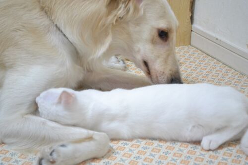 クララと白ネコもんちゃんです(^o^)丿 この二人は大の仲良しです♪ ガッツリ噛まれてます(^_^;) もんちゃんがどんなにめちゃくちゃにしてもクララは嬉しそうに相手します^^ もんちゃんがおっぱい探す格好したらクララはちゃんと足上げてはいどうぞって^^…